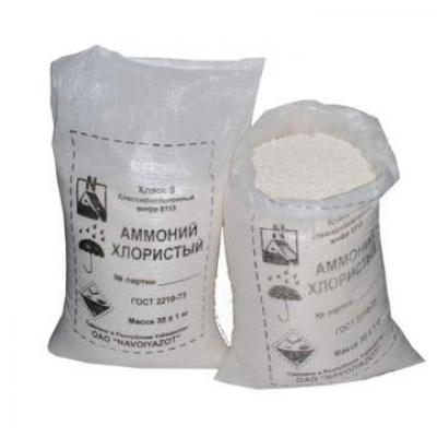 Применение: Аммоний хлористый (хлорид аммония) широко применяется в химической, металлургической, электротехнической, лесной, медицинской и других отраслях. Хлорид аммоний хлористый применяется в сельском хозяйстве в качестве азотного удобрения, в металлургии при травлении металлов. В текстильной промышленности для окрашивания тканей, в химической аммоний хлористый применяется в качестве отвердителя лаков и клеев. Упаковка: п/п мешки по 35 кг.
